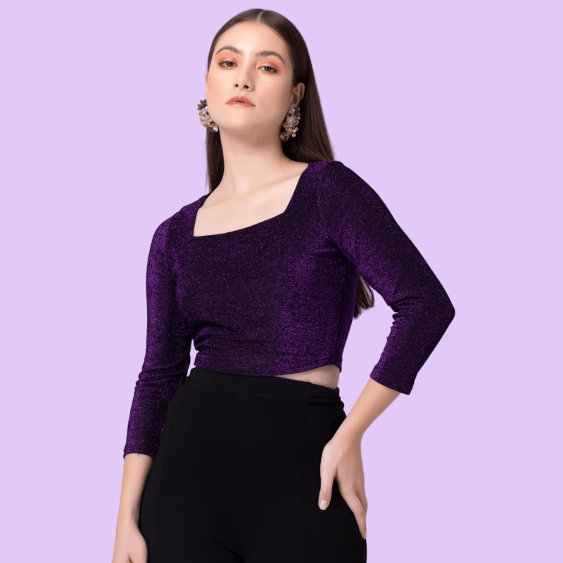 Allen Solly Purple Square Neck Shimmer Crop Top