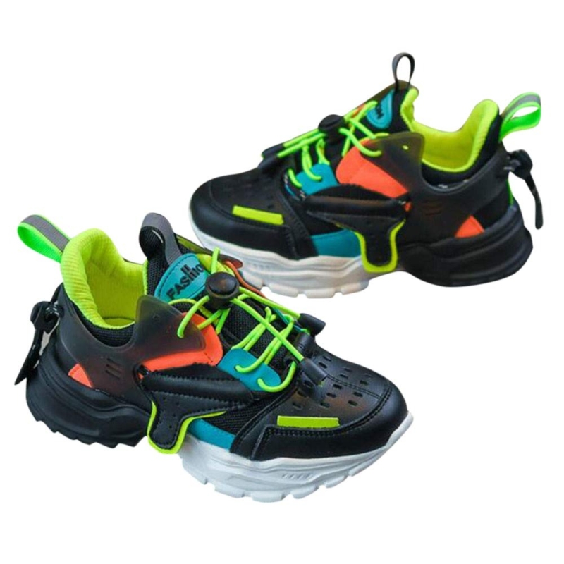 أطفال الأولاد PU الرباط حتى الأحذية الرياضية باللون الأسود