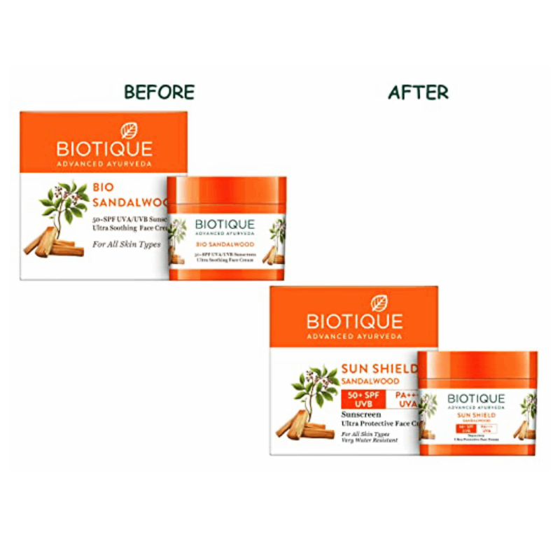 بيوتيك صن شيلد خشب الصندل 50 + SPF UVB واقي من الشمس كريم الوجه الواقي الترا لجميع أنواع البشرة