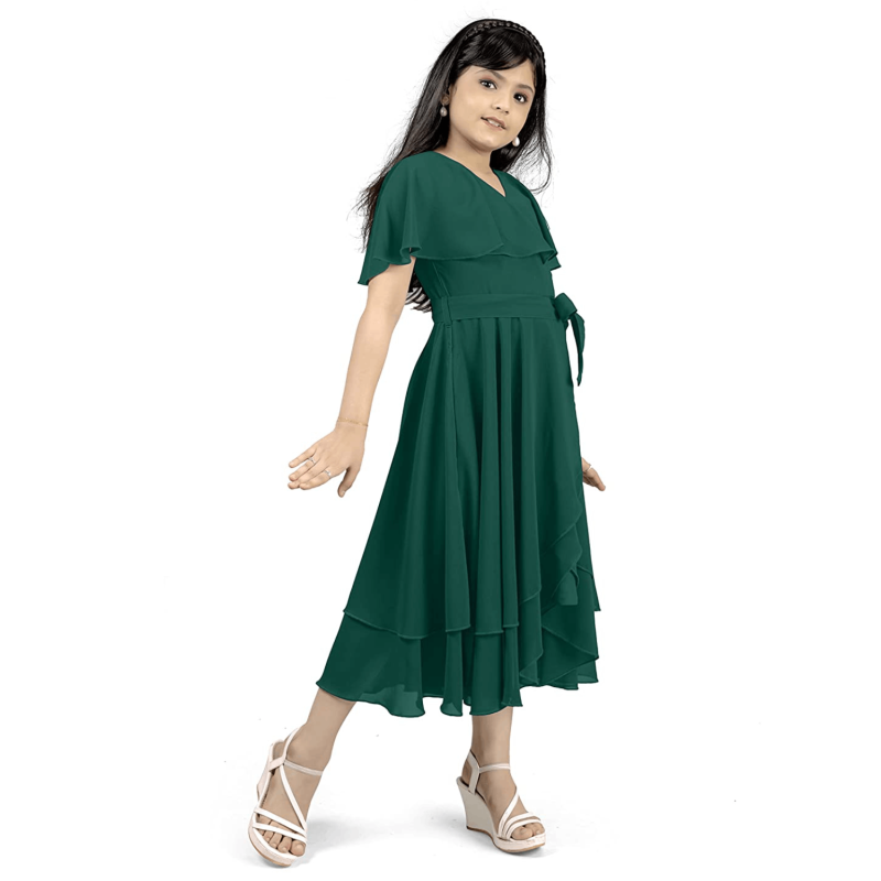 فستان جورجيت غير متماثل بطول العجل للفتاة