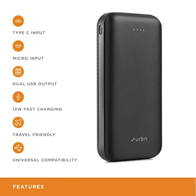 حافظ على شحن أجهزتك وتشغيلها حتى عندما تكون بعيدا عن مأخذ الطاقة من خلال الحصول على Urbn 20000 mAh Powerbank. يتيح لك منفذ الإدخال/الإخراج من النوع C شحن بنك الطاقة هذا بسرعة بالإضافة إلى جهازك المتوافق. كما يأتي مزودا بمنفذي إخراج USB ، بحيث يمكنك شحن أجهزة متعددة من خلال هذا في نفس الوقت.