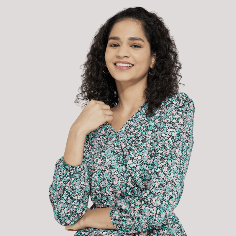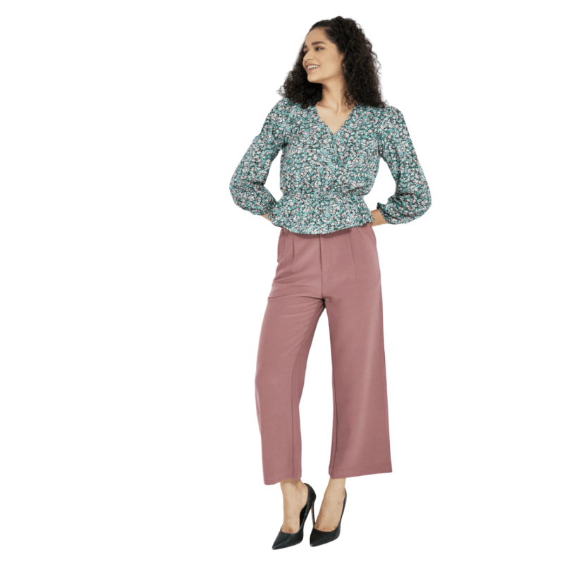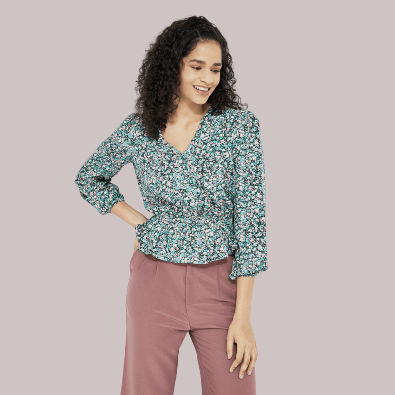Strike the right blend between comfort and fashion with this full-sleeved, v-neck women's top of lightweight polyester fabric.