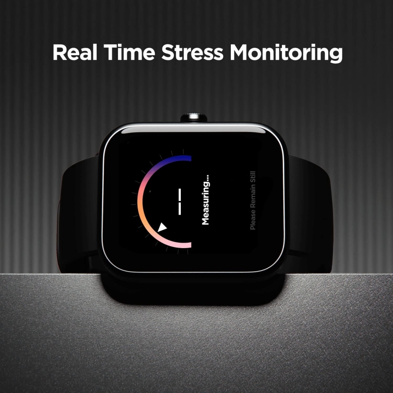 • HR & SpO2- The watch comes with a stress monitor that reads your HR to indicate stress levels. It also monitors your heart rate and SpO2 (blood oxygen levels) to keep a tab on your overall health.