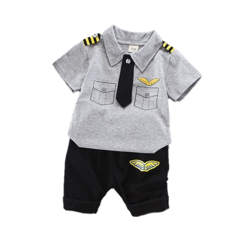 • We recommend this little pilot t-shirt tie and shorts, modern trendy party wear clothing set. It's a clothing set with tie and black shorts, that your lil boy is sure to love. Be it a play date with friends , an outing or a birthday wedding festive party with family; this outfit is ideal for all.