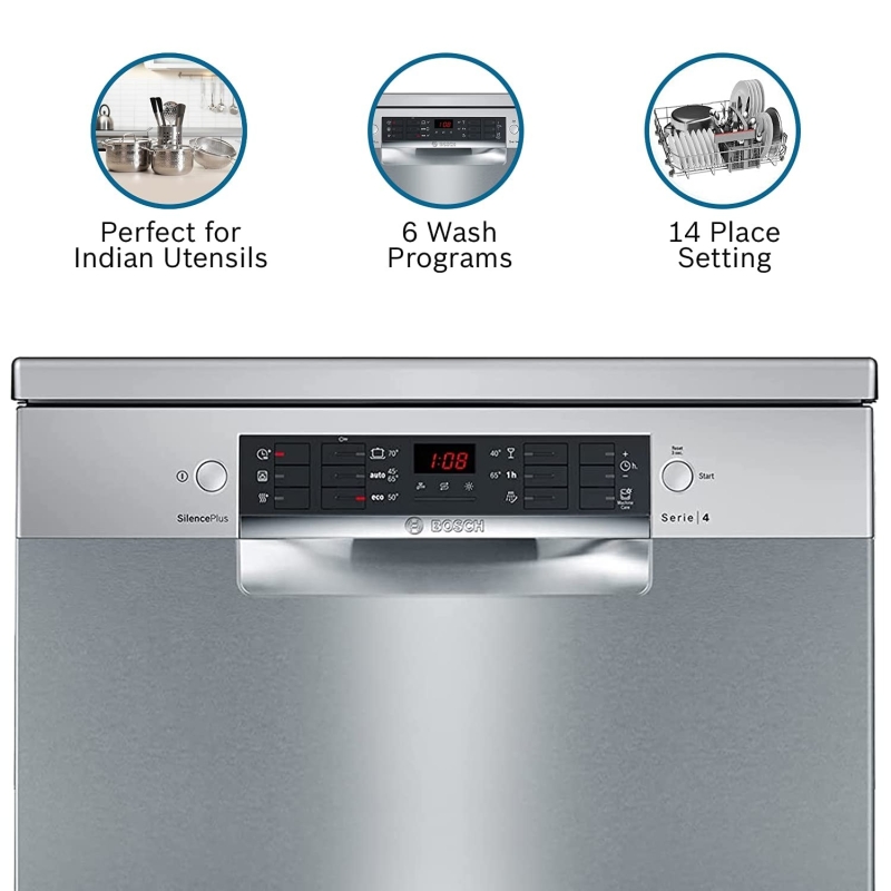 • Bosch dishwashers are designed for Indian Kitchens and can easily fit all tyes of Indian utensils. No need to manually pre-rinse utensils before loading the dishwasher