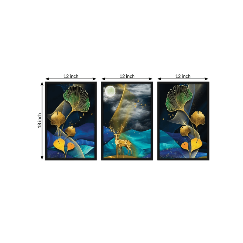 Deer & Leaf Print Wall Arts