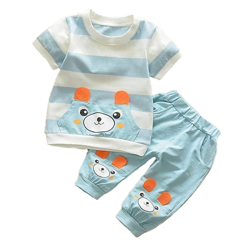 Bold n elegante niños Cartoon Stripe estampado de algodón Media manga y pantalones cortos