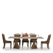 • Dimensiones (en centímetros): Tabla: H 75 x W 220 x D 110; Presidente: H 97 x W 48 x D 48