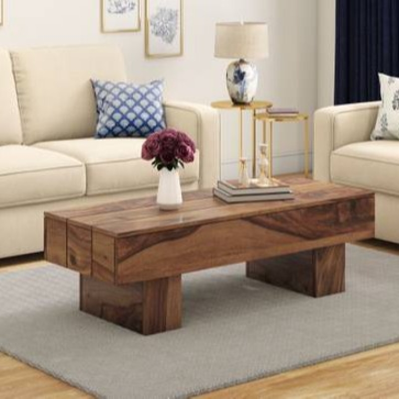 Mesa de café de madera maciza rectangular Idris en acabado de teca
