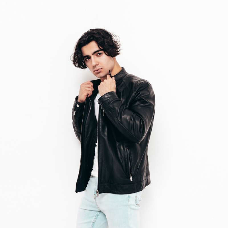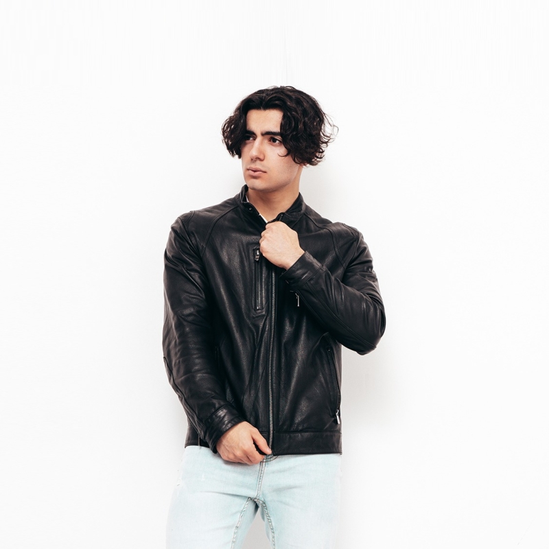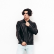 Hombres chaqueta de cuero liviano sólido negro