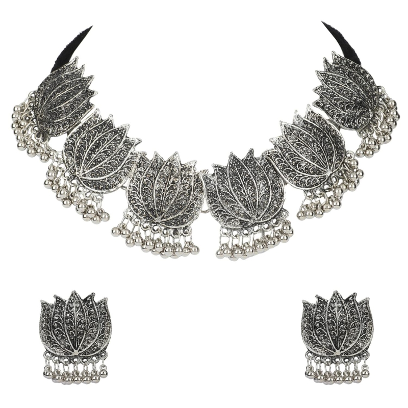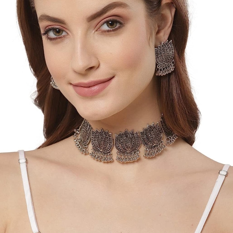 Joyería de collar de gargantilla de plata oxidada Joya para mujeres