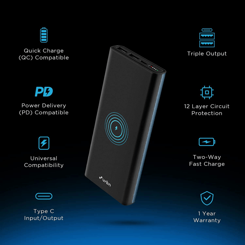 URBN 10000 MAH 15W LI-Polymer Premium Black Edition Wireless Power Bank