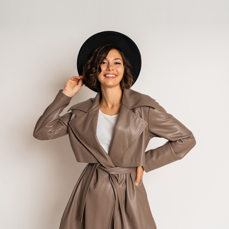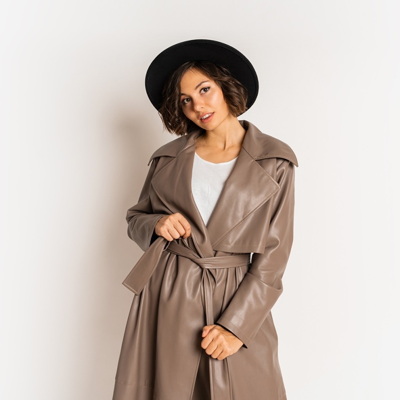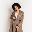 Mujeres marrones de gabardina de larga longline de fuentes sólidas con cinturón