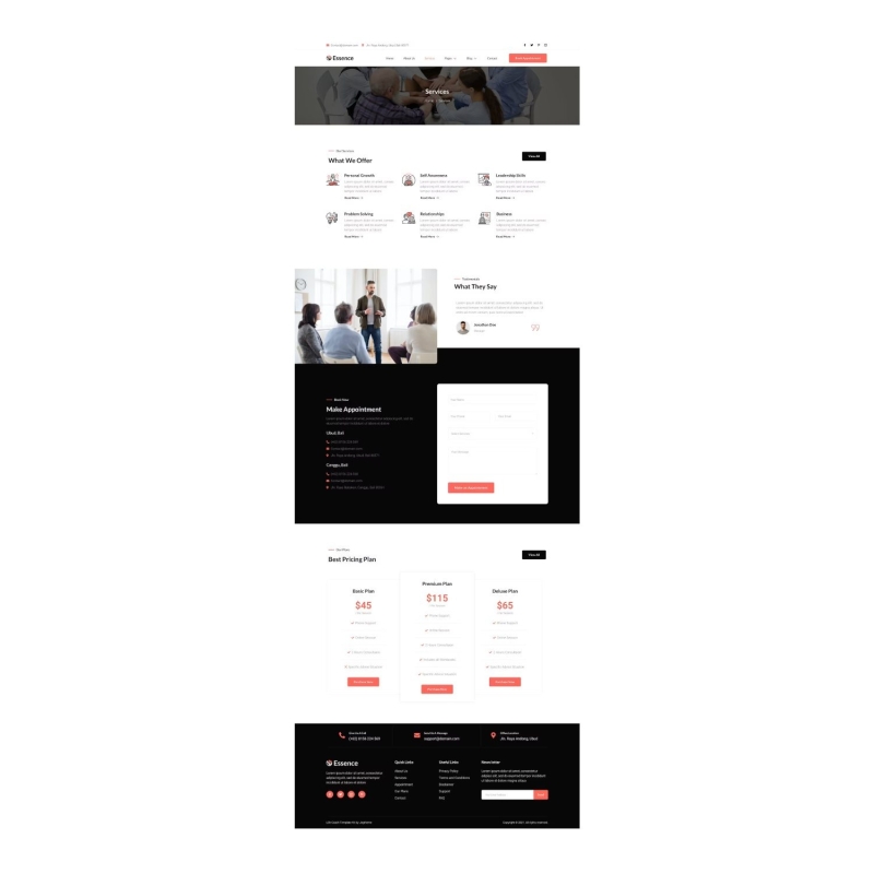 Essence is modern and clean Life Coach and Speaker Elementor Template Kit created especially for life or business coaches and trainers, personal coaches, speaker events, mentoring services website, or counseling company. Essence has a beautiful and unique design with a 100% responsive layout, retina-ready, and without a single line of coding!