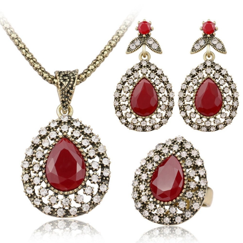 • High Quality Gold Plated Jewellery Pendant Necklace Set with Earrings and Ring