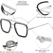 【DURABLE METAL MATERIAL DESIGN】Inspired from Tony Stark retro square sunglasses for men are made of metal materials and metal hinges. They are transparent glasses for men which are durable enough to be used for a long time. The smooth hinges on the goggles let you wear them for a long time without discomfort.