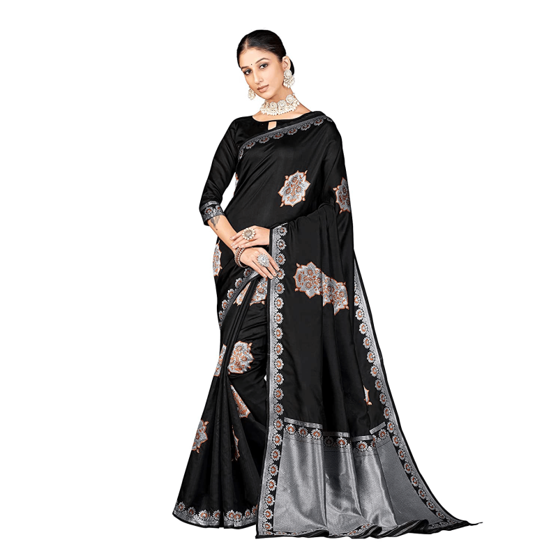 Package Content: 1 Saree with un-stitched blouse; Color: Black