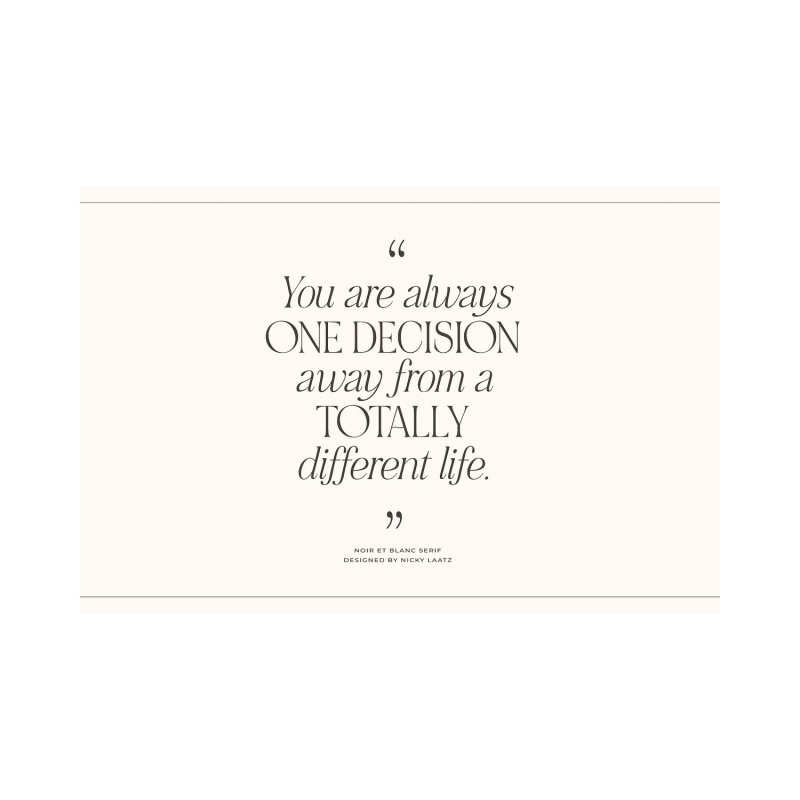 NOIR et BLANC comes in 3 lightly varying weights help ensure the type looks good at both large and small sizes, and on both light and dark backgrounds.