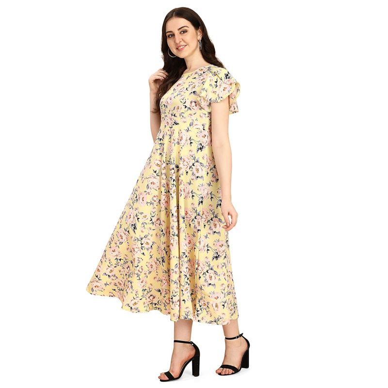 OOMPH! Women's Crepe A-Line Maxi Dress - Daffodil Yellow (md301xxl}