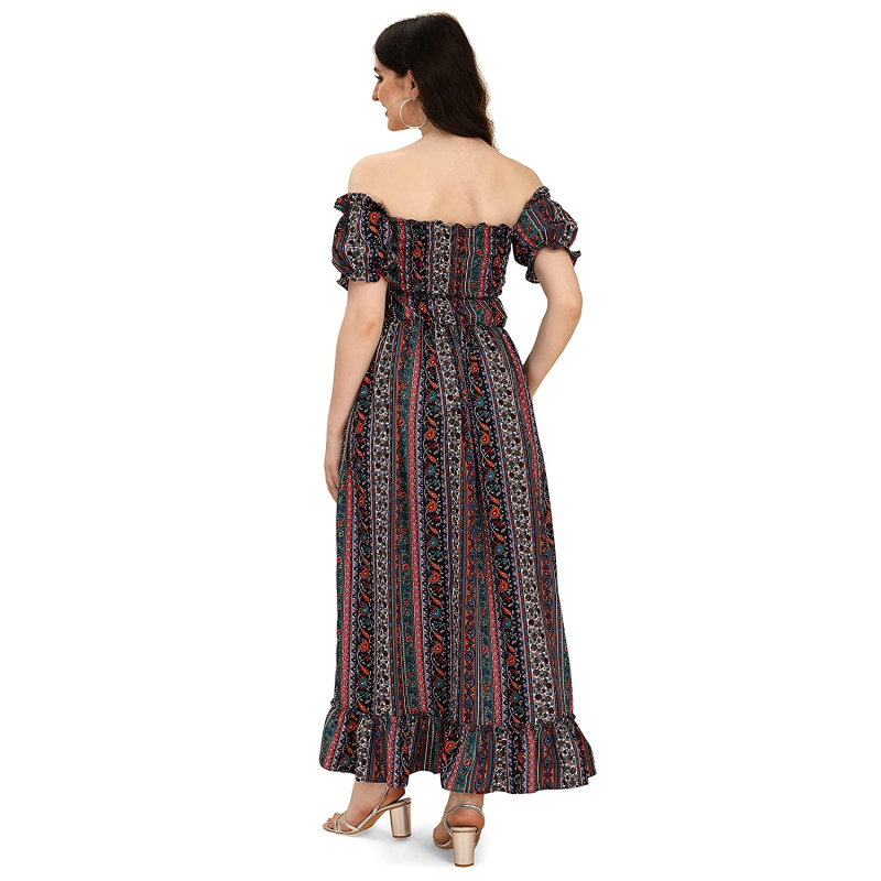 OOMPH! Women's Crepe A-Line Maxi Dress (Smocked}