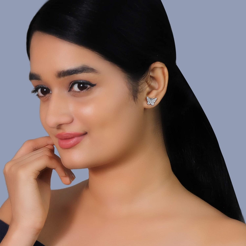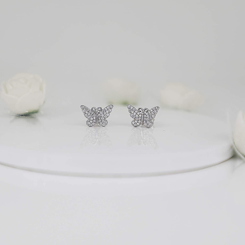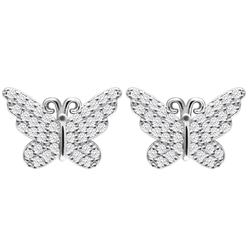 Sterling Silver Zircon Studded Butterfly Studs
