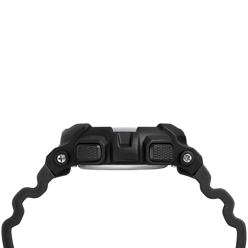 • Black & gold-tone 44mm resin case; acrylic lens; black negative digital display