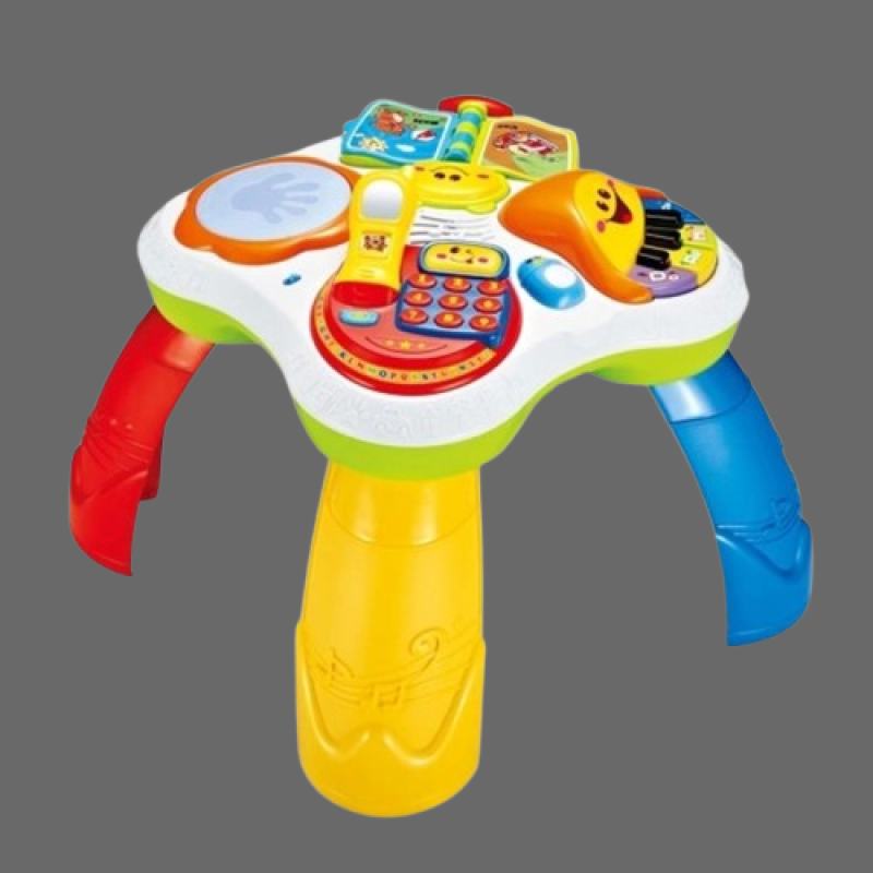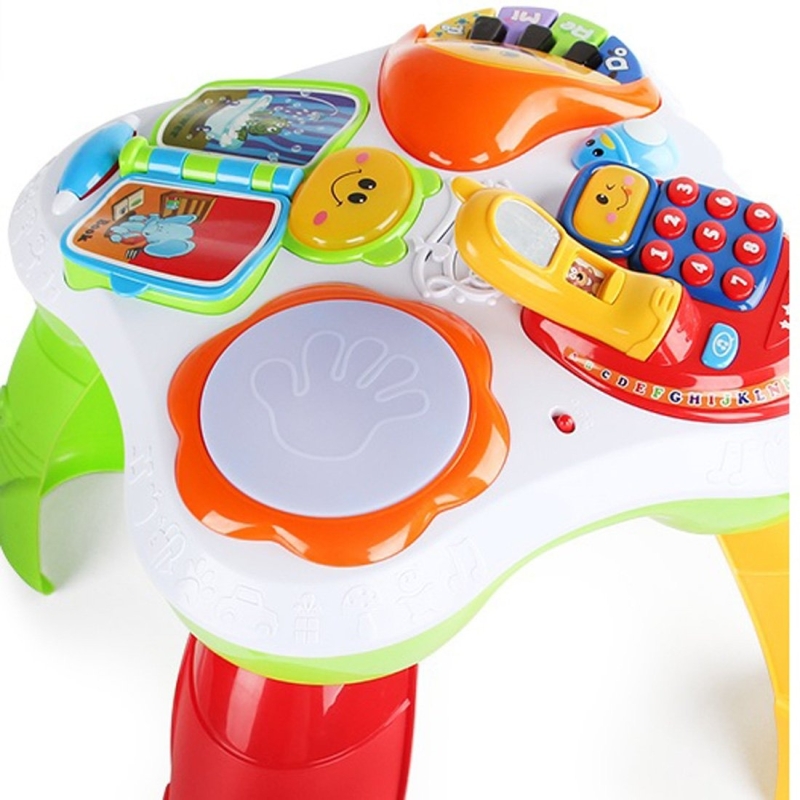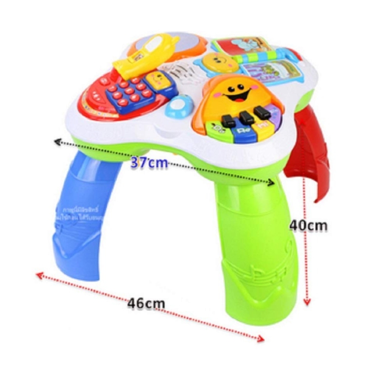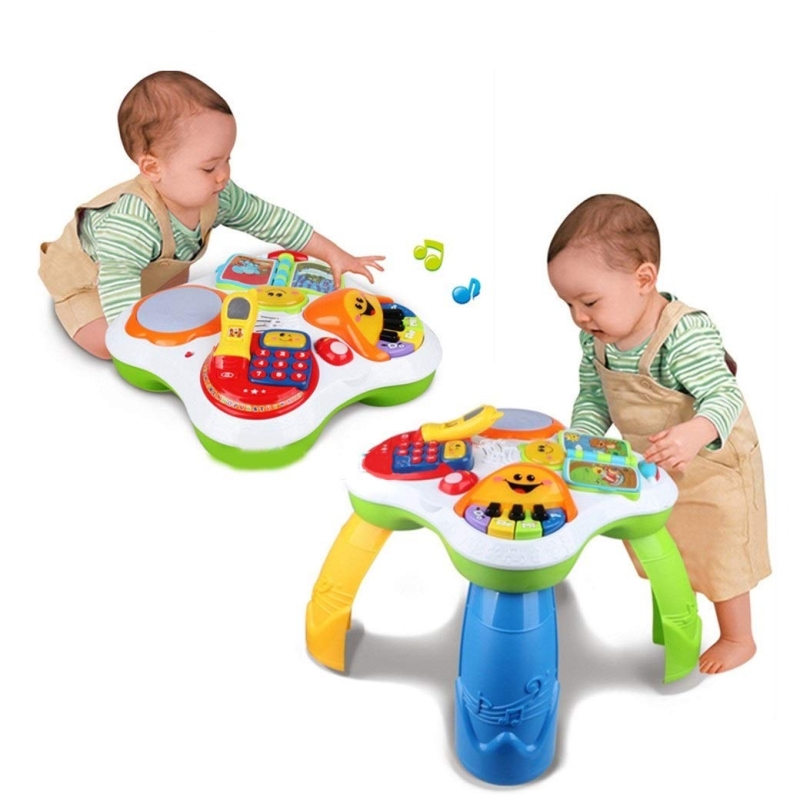 • This learning table can play music and has a light function. Made of safe and nontoxic material, the activity desk has detachable legs so that your kids can play at any place. It can teach your baby to learn the language, numbers, colors, songs, logic, etc.