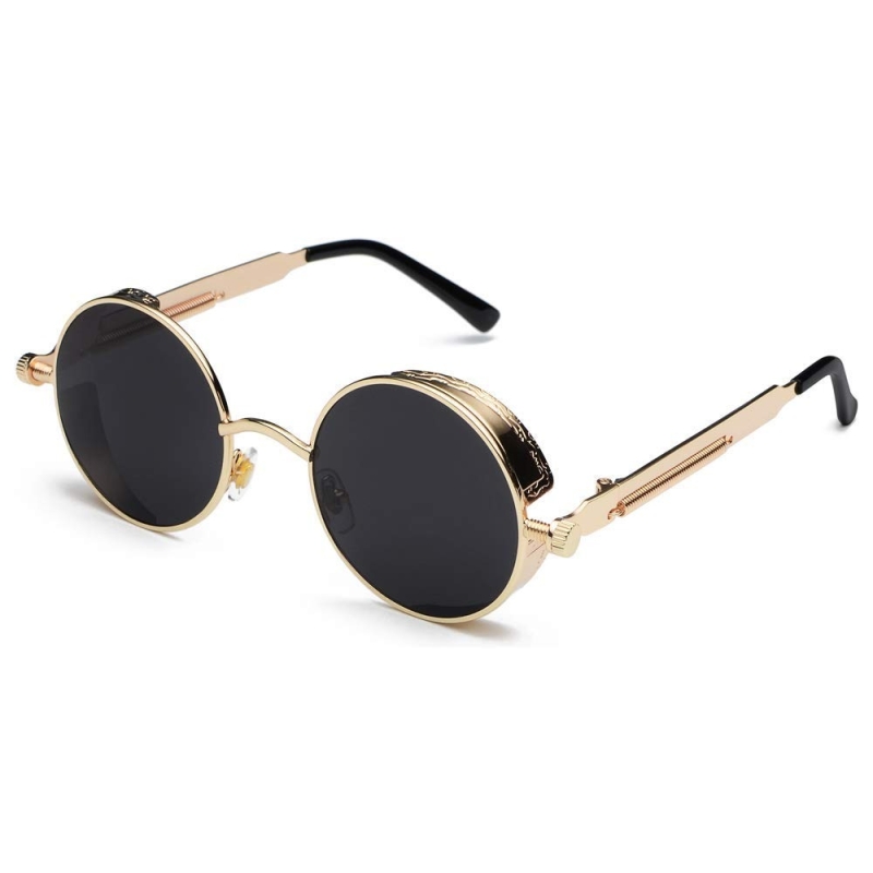 elegante' Branded Tony Stark Steampunk Golden Metal Round Sunglasses is suitable for both men and women with all types of faces