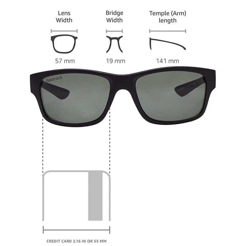 Size: Lens Width: 57mm, Bridge Width: 19 mm, Temple length: 141mm