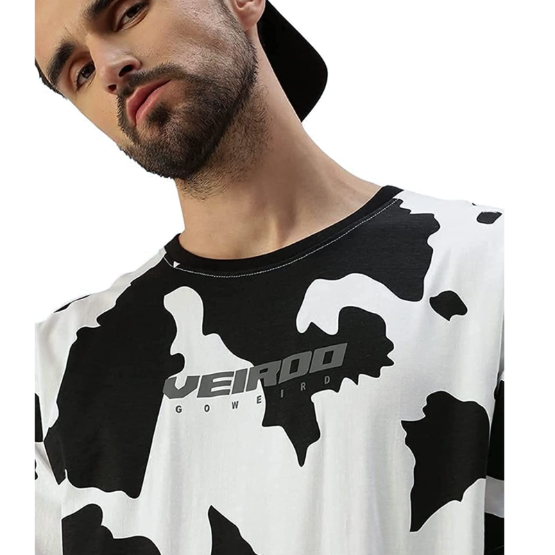 Veirdo 100% Cotton Oversize Drop Shoulder Loose Fit Round Neck Half Sleeve Animal Printed T-Shirt for Men/Boys