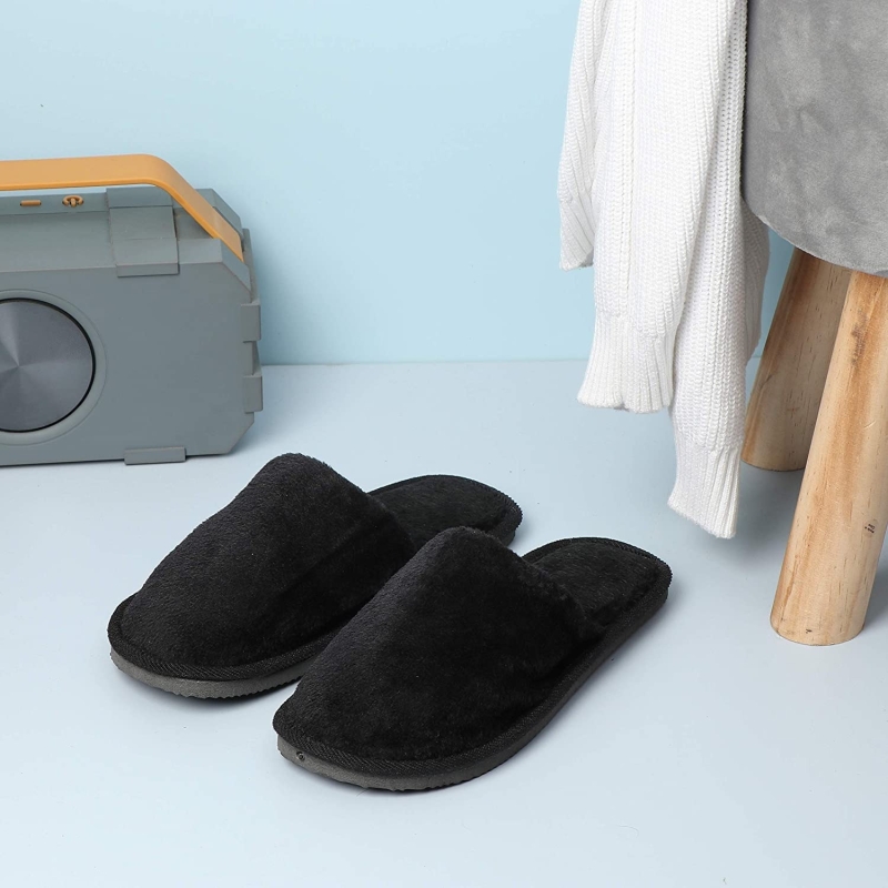 • Slip On: Slippers are easy to slip in and out.; Main Material: Soft plush, comfortable, lightweight, and durable EVA sole makes the slippers suitable for bedroom use.