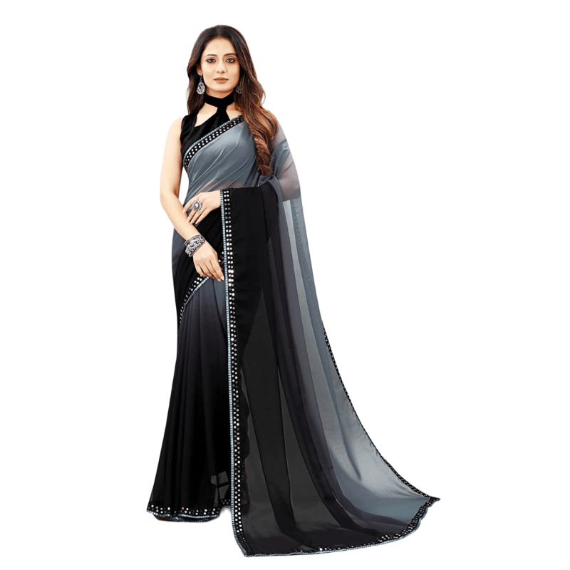 Women's Georgette Half Half Saree with Mirror Lace Border with Plain Designer blouse