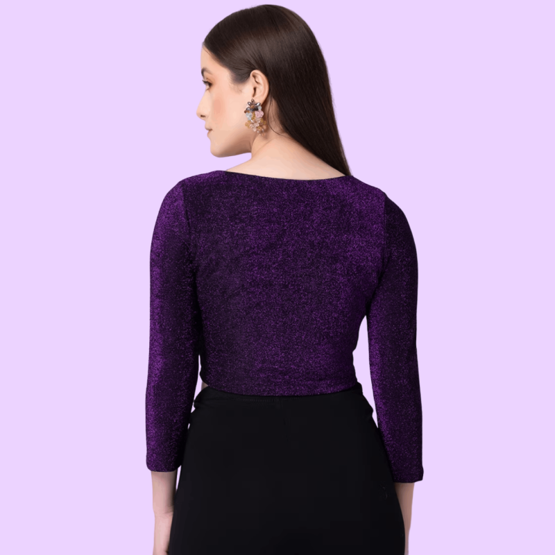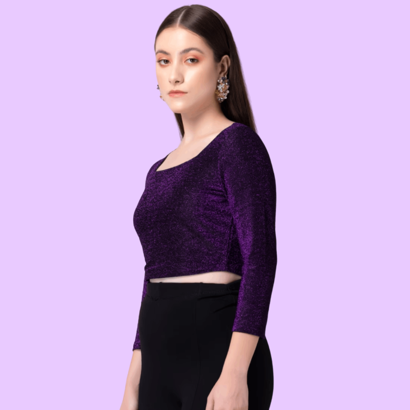 Allen Solly Purple Square Neck Shimmer Crop Top
