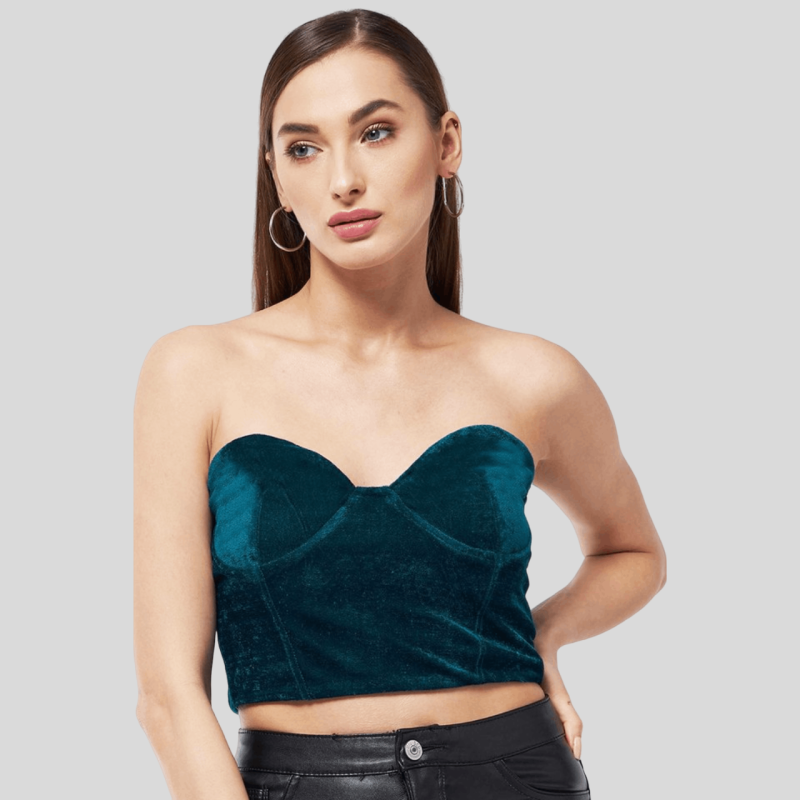 BIBA Solid Velvet Off Shoulder Top
