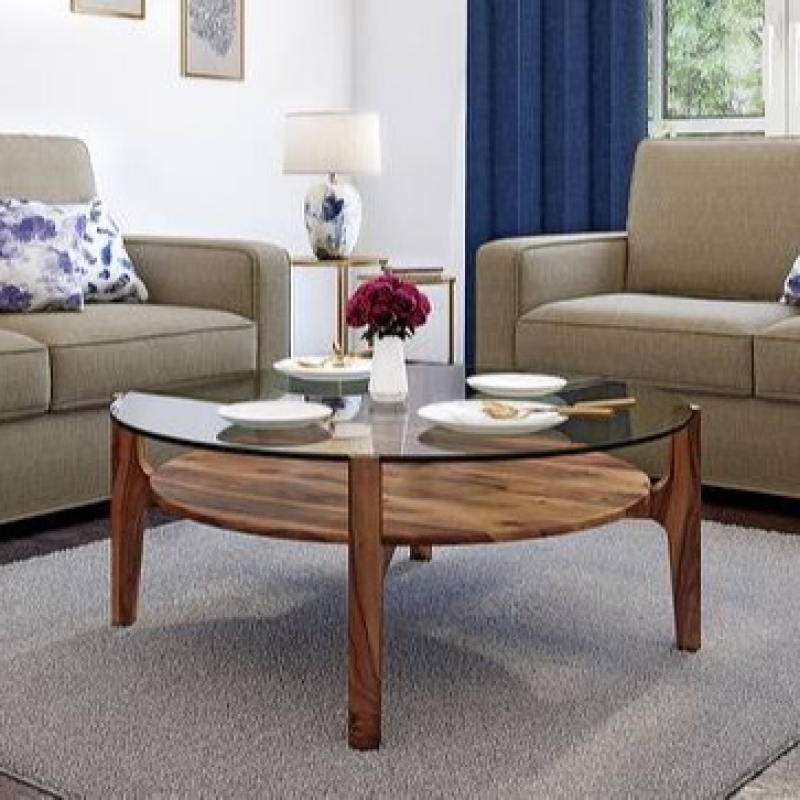 طاولة قهوة كايمان مستديرة من الخشب الصلب في إنهاء خشب الساج