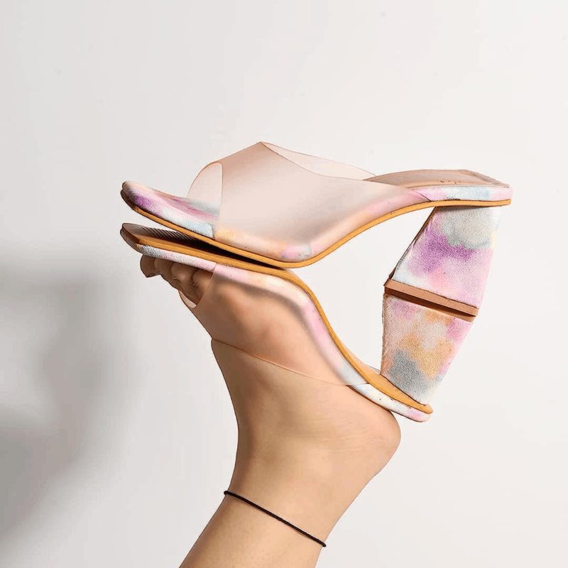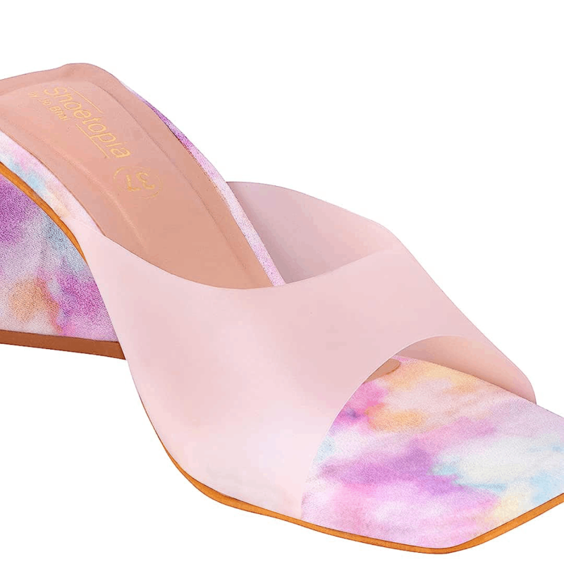 مريحة مربع اصبع القدم قوس قزح طباعة كتلة الكعب للنساء