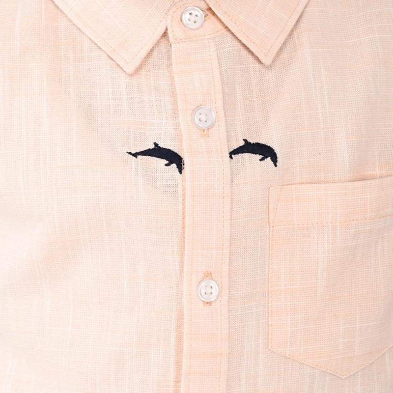 جونيور بويز 100٪ قطن عادي بقصة كاملة الأكمام قميص مطرز