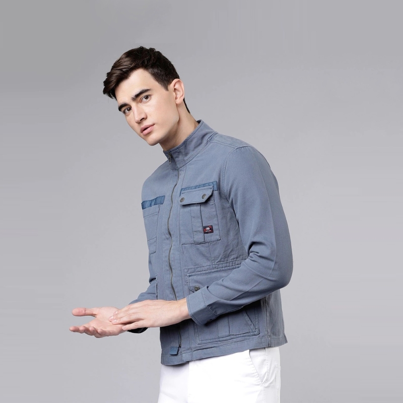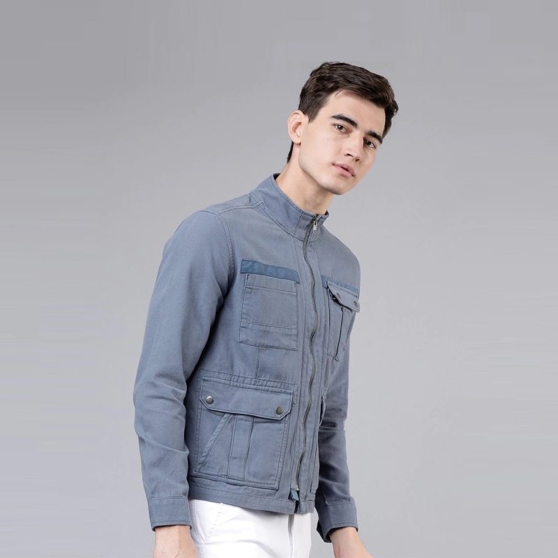 جاكيت بسحاب أمامي بفتحة رقبة عالية للرجال