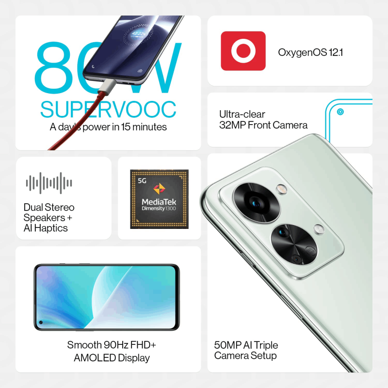ون بلس نورد 2 تي 5 جي (رمادي شادو ، 8 جيجا رام ، تخزين 128 جيجا بايت)