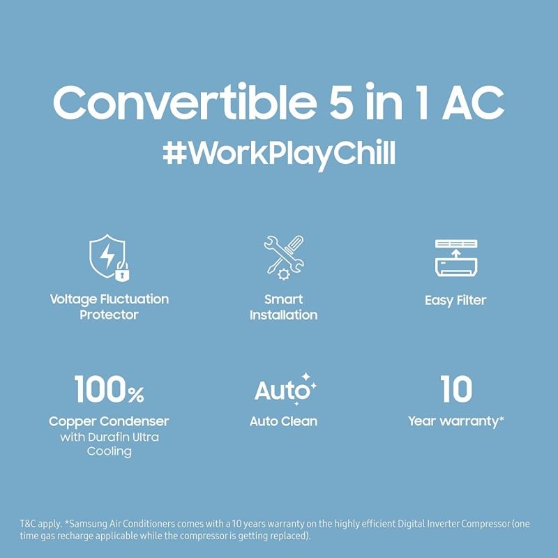 وحدة تكييف سامسونج سبليت 1 طن 3 نجوم بتقنية Wi-fi ، تقنية خالية من الرياح