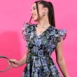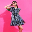 طوكيو توكيز المرأة الأزرق / الأسود المطبوعة صالح وفستان مضيئة