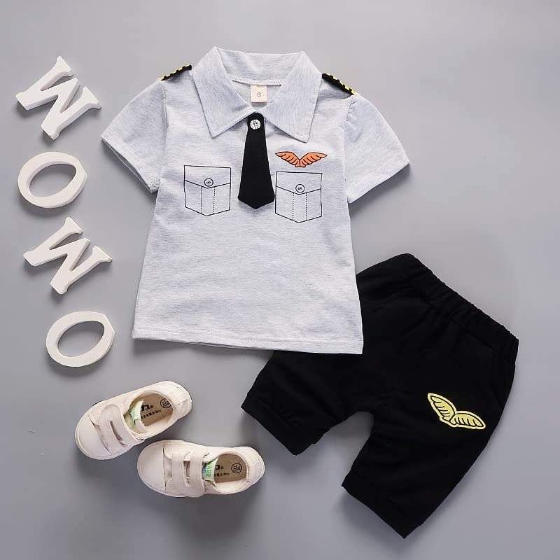 • We recommend this little pilot t-shirt tie and shorts, modern trendy party wear clothing set. It's a clothing set with tie and black shorts, that your lil boy is sure to love. Be it a play date with friends , an outing or a birthday wedding festive party with family; this outfit is ideal for all.