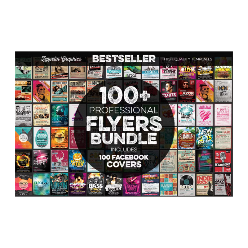 En su interior encontrarás plantillas que van desde eventos electrónicos de DJ hasta barbacoas o eventos festivos. Así que, ya sea que diseñes volantes para festivales independientes, navidad o campeonatos de fútbol, ¡este es el paquete para ti! Con 82+ diseños de volantes, todos con portadas de Facebook a juego incluidas y la mayoría de las plantillas con diferentes versiones de color, encontrarás todo lo que necesitas en tus futuros proyectos de volantes/carteles.