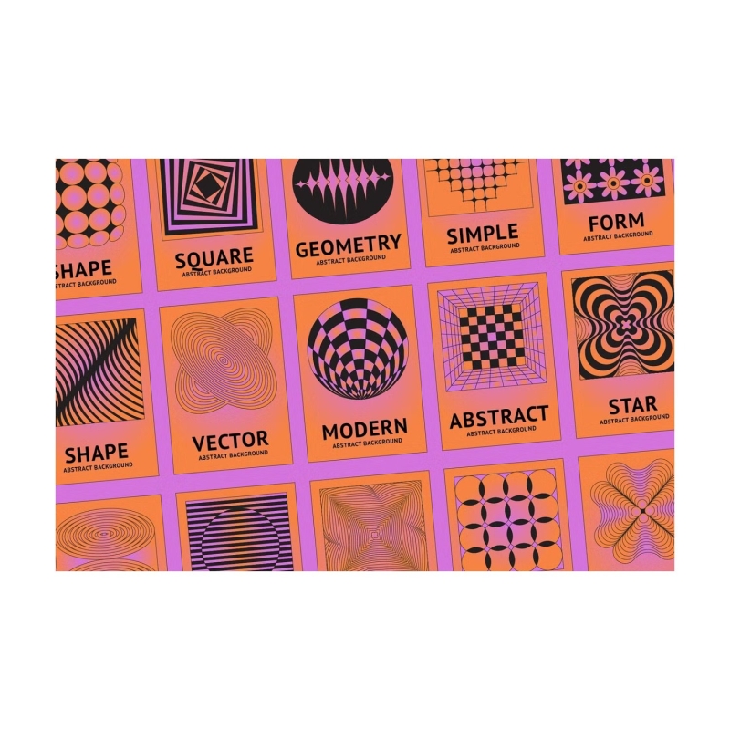 Geometría abstracta : la nueva colección con elementos gráficos vectoriales: plantillas de logotipos, marcos e impresiones. Ilustraciones decorativas y minimalistas. 150 elementos en 2 variaciones de color para sus proyectos de diseño