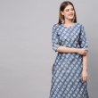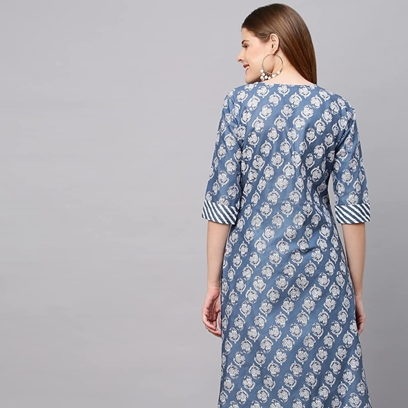 Anni Designer Femenina Mezcla de algodón Impreso Kurta Straight con pantalón