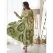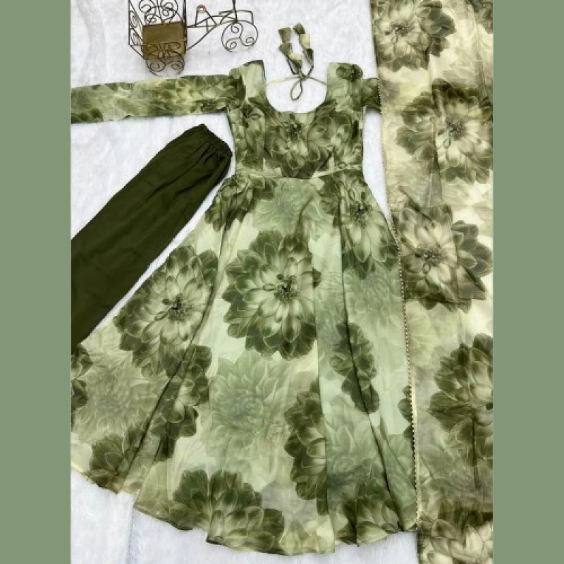 FASHIONABAL TABBY ORGANZA SILK Servicio en PANTALÓN DE VESTIR CON ESTAMPADO 3D CON DUPATTA VERDE