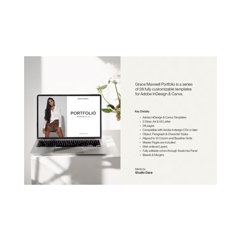 GRACE MAXWELL es un diseño de portafolio totalmente personalizable creado para Adobe InDesign y Canva. La plantilla contiene 28 páginas y está diseñada tanto en A4 (297 x 210 mm) como en carta de EE. UU. (8,5 "x11"). Es perfecto para todos los diseñadores, fotógrafos, ilustradores, arquitectos, estilistas, artistas, directores de arte, agencias de todos los tamaños y más.