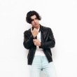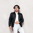 Hombres chaqueta de cuero liviano sólido negro