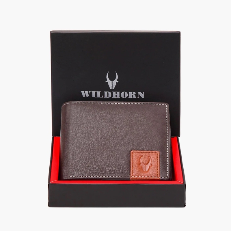 Men marrones sólidos sólidos rfid cuero protegido billetera de dos veces
