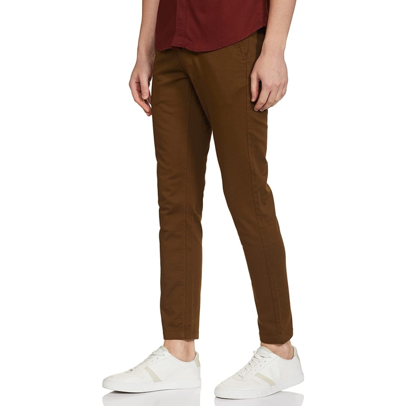 Men Olive Flat Front Solid Casual Trousers